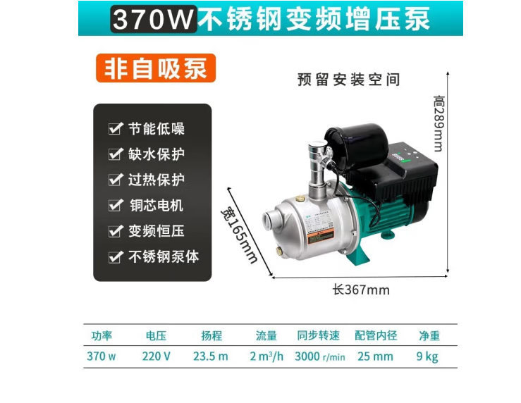 新界不銹鋼變頻增壓泵恒壓水泵全自動(dòng)智能家用自來水加壓不銹鋼加壓水泵 370W變頻增壓泵 自營