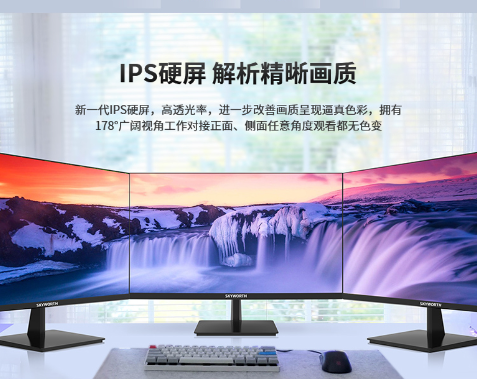 創(chuàng)維 27英寸電腦顯示器 三邊微邊框ips技術(shù)屏 低藍(lán)光可壁掛拼接屏 辦公液晶顯示屏幕M271Fj 黑色 自營