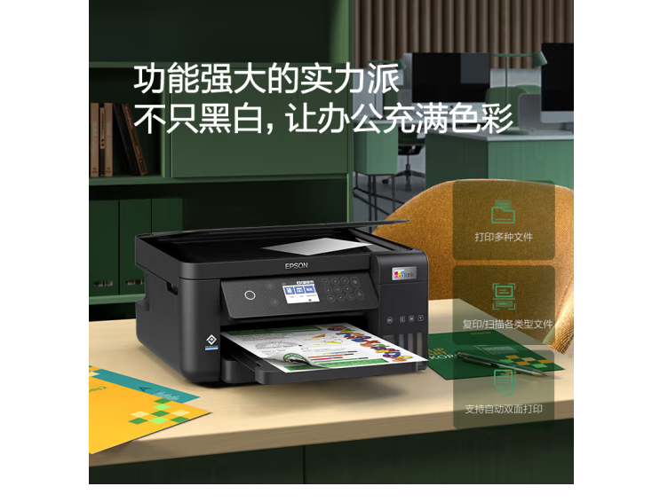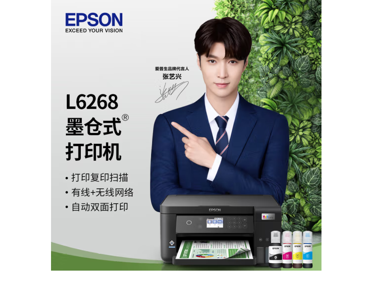 愛普生(EPSON)L6268墨倉式 彩色無線多功能一體機(jī) 精英款(打印 復(fù)印 掃描 wifi 有線 自動雙面) 自營