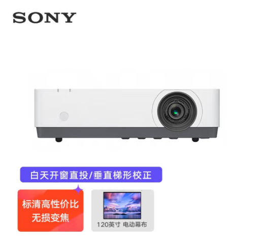 索尼(SONY)VPL-EX570 投影儀 投影機辦公(標清XGA 4200流明 雙HDMI)【含120英寸電動幕布】 自營