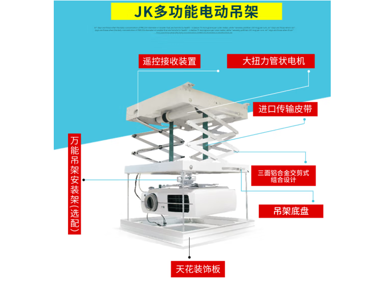 JK經(jīng)科投影儀電動吊架 投影機吊架 電動升降架 電動遙控投影支架 T80A (行程655MM) 自營