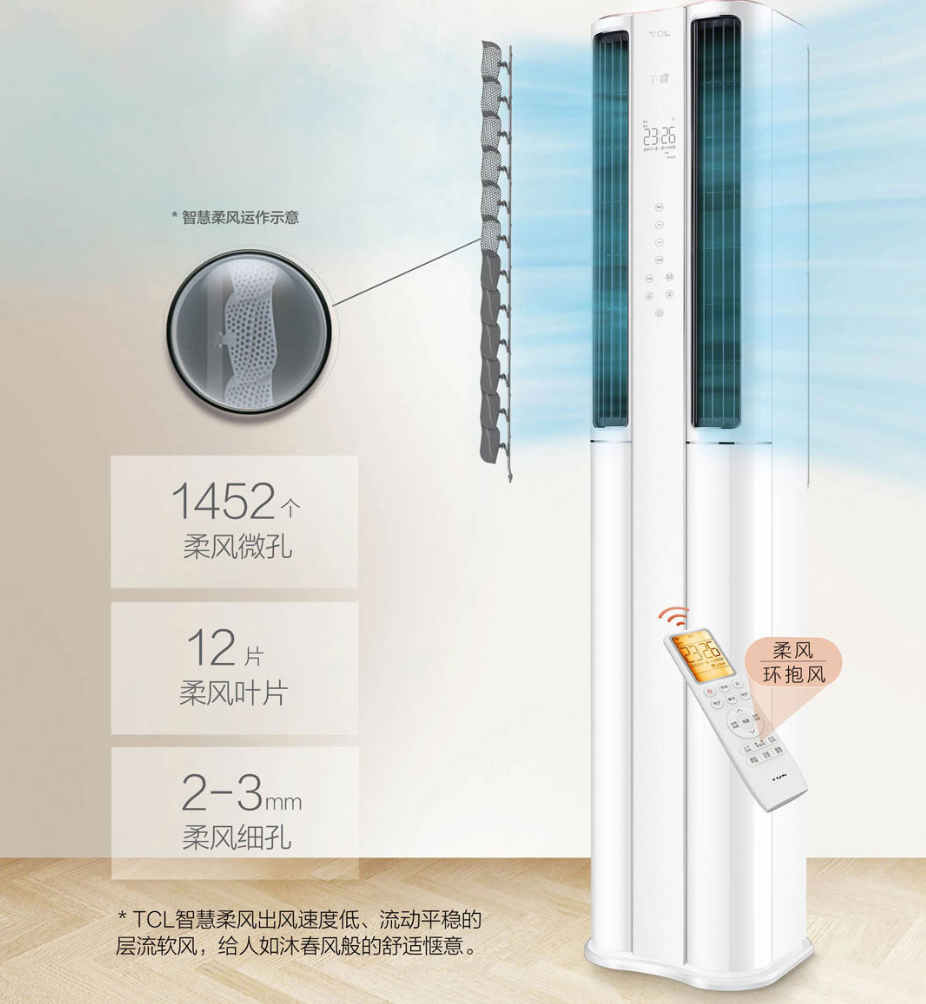 ¥8250.00TCL空調(diào) 大3匹 變頻冷暖 三級能效 柔風自清潔 圓柱立柜式空調(diào) KFRd-72LW/BL23S 380V