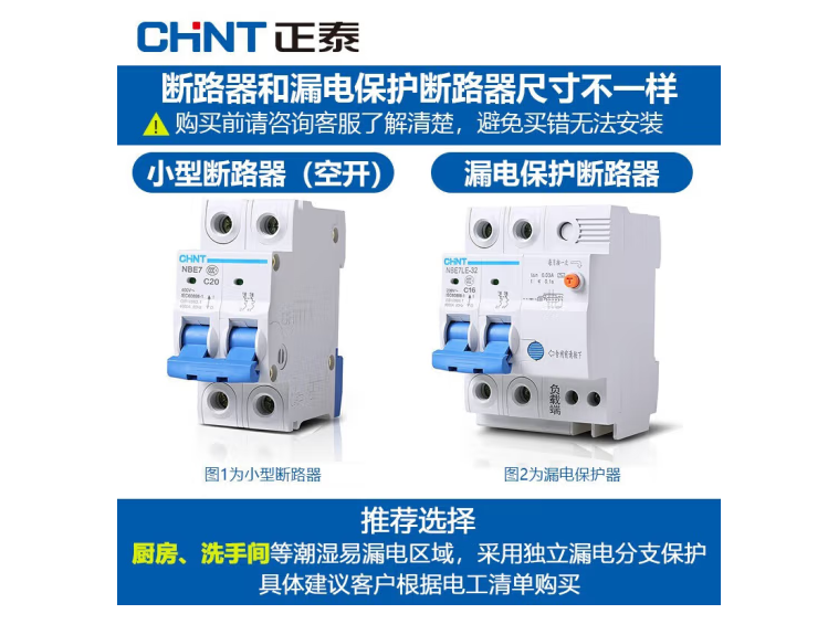 正泰(CHNT) 漏電保護器 空氣開關 家用小型空開總閘斷路器 漏保NBE7LE 2P 63A 自營