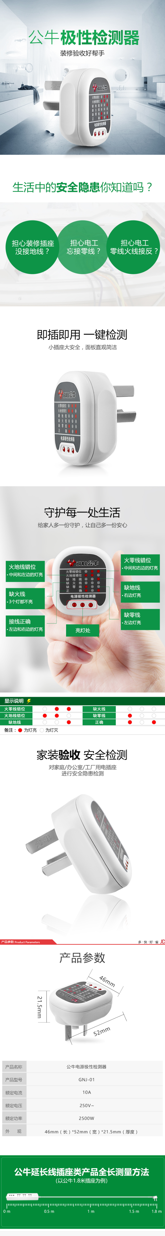 公牛(BULL)GNJ-01驗電器插座多功能電源極性測電器電路線相位地線檢測器 自營