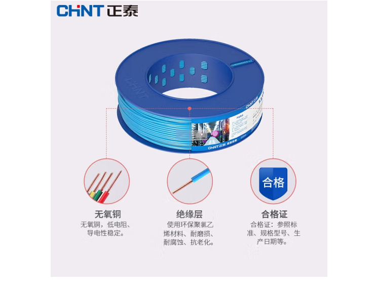 正泰(CHNT)電線電纜BV-6藍色家裝照明插座用線一般用途單芯硬導體無護套電纜100米