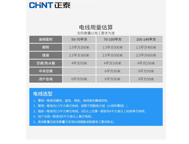 正泰(CHNT) 電線電纜 BV6平方 藍(lán)色單芯單股零線 國(guó)標(biāo)銅芯硬線 家裝進(jìn)戶總線50米 自營(yíng)