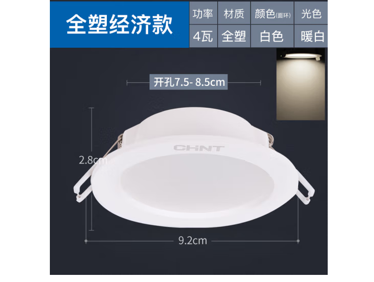 正泰(CHNT)LED筒燈3w/4w薄天花燈 客廳吊頂桶燈過道嵌入式孔燈洞燈節(jié)能led全塑筒燈 【4W】白色暖白光 自營(yíng)