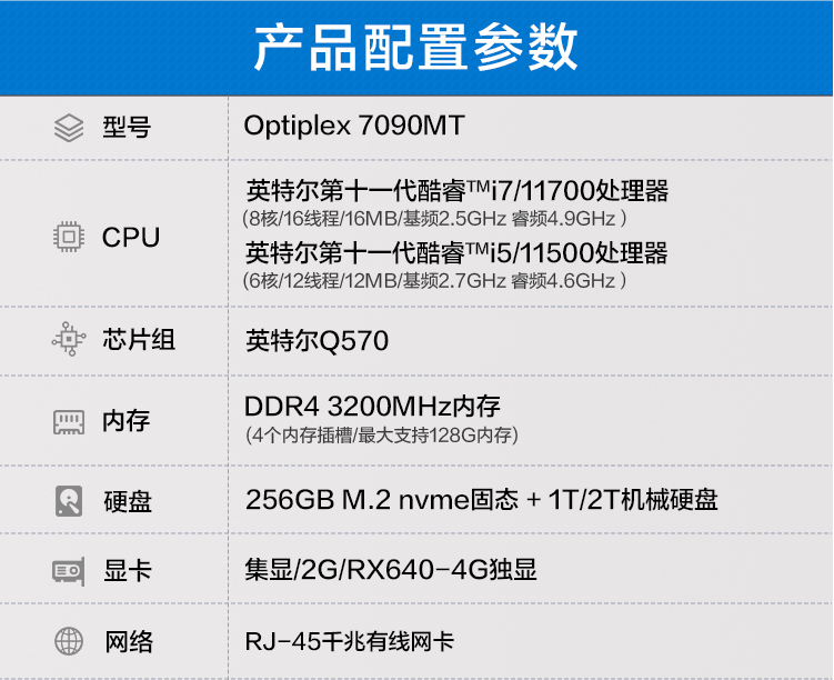 戴爾(DELL) 臺式機(jī)7090MT Optiplex高性能電腦主機(jī)商用繪圖設(shè)計渲染游戲 定制 i9-11900/32G/512G固態(tài)+2T RTX 3060Ti 8G
