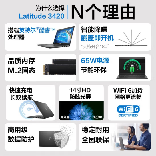 戴爾(DELL) 【新品】戴爾筆記本(DELL)Latitude 3420商用便攜手提電腦14英寸 定制I5-1135G7/8G/512G/集顯