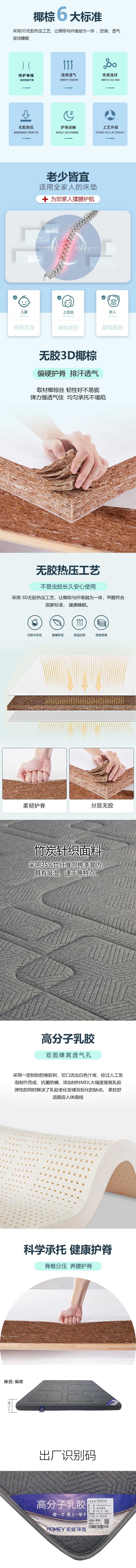 宏益床墊 竹炭乳膠19款 11cm高純度乳膠3D椰棕竹炭針織面料 黑灰色 1500*2000 自營
