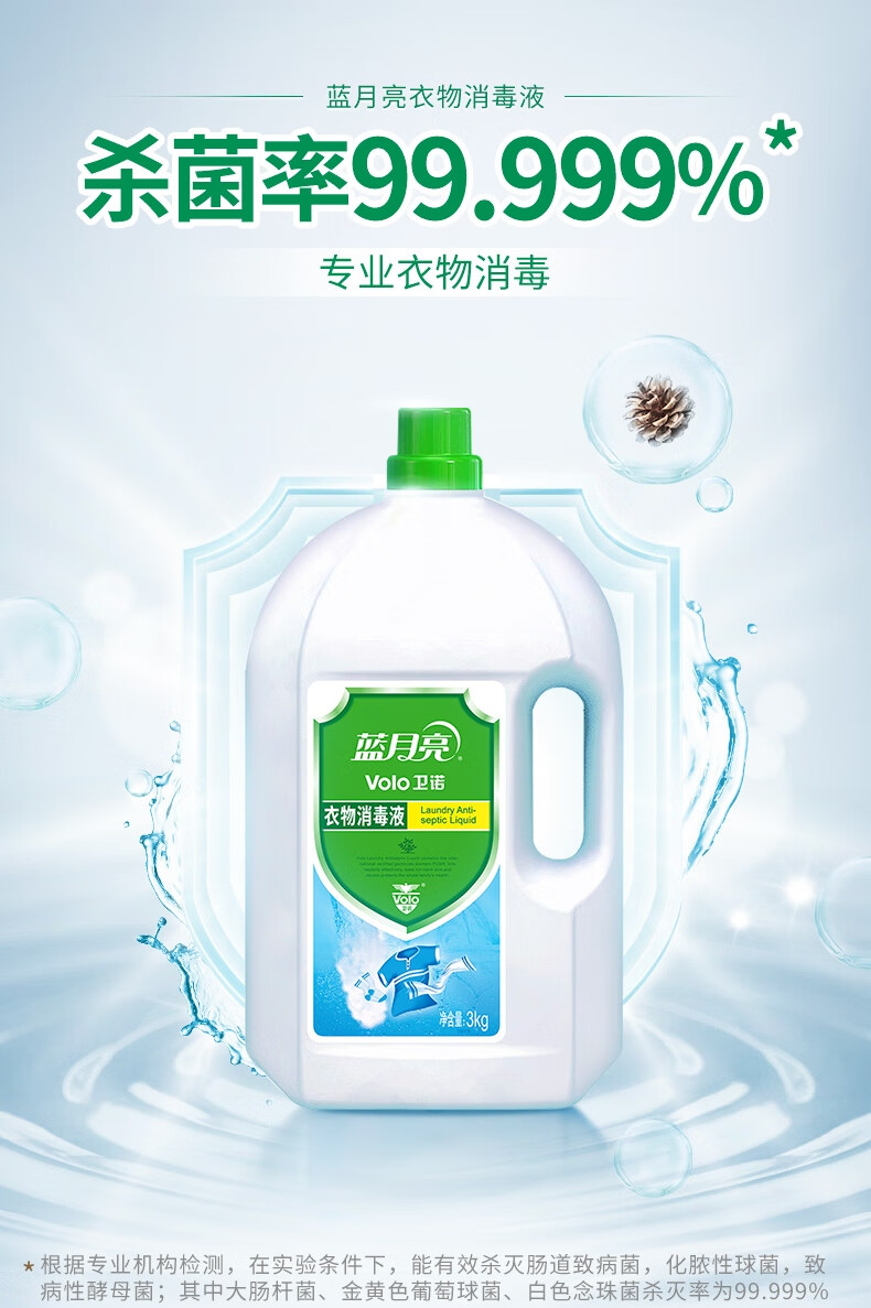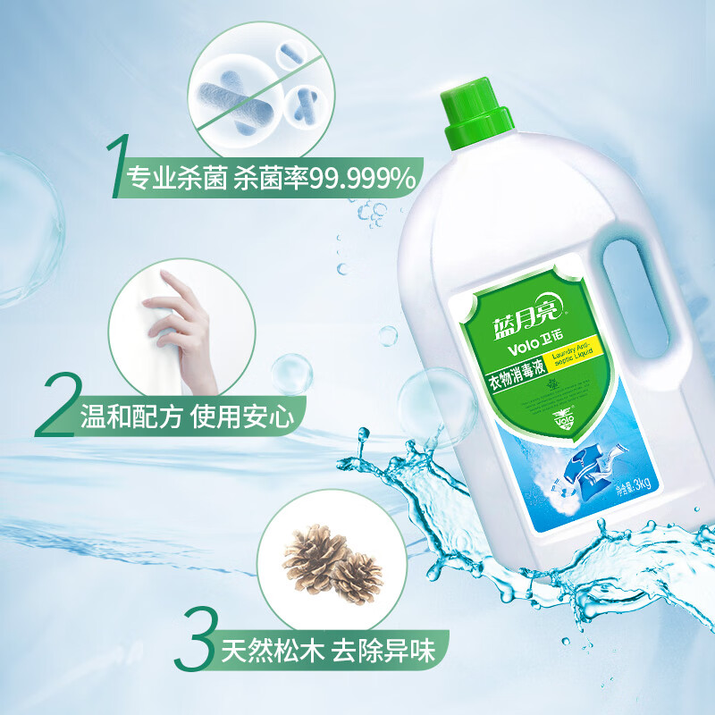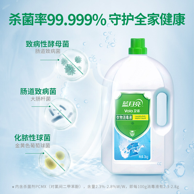 ¥12.20藍月亮 衛(wèi)諾 衣物消毒液 衣物除菌液3kg 有效殺菌99.999% 同洗衣液搭配使用 兒童衣物內衣外褲同洗